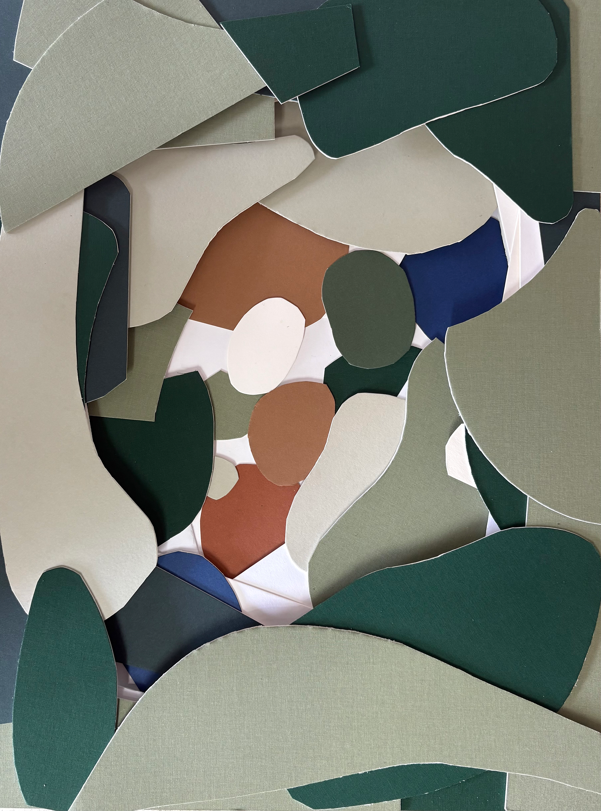 Acrylic, enamel, white cardboard, Mi-teintes papers on canvas